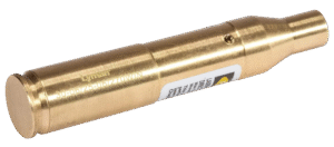 This brass-constructed Class IIIA red laser (635–655 nm, <5 mW) includes batteries and provides a 15–100 yard sighting range, making it ideal for accurate bore sighting.